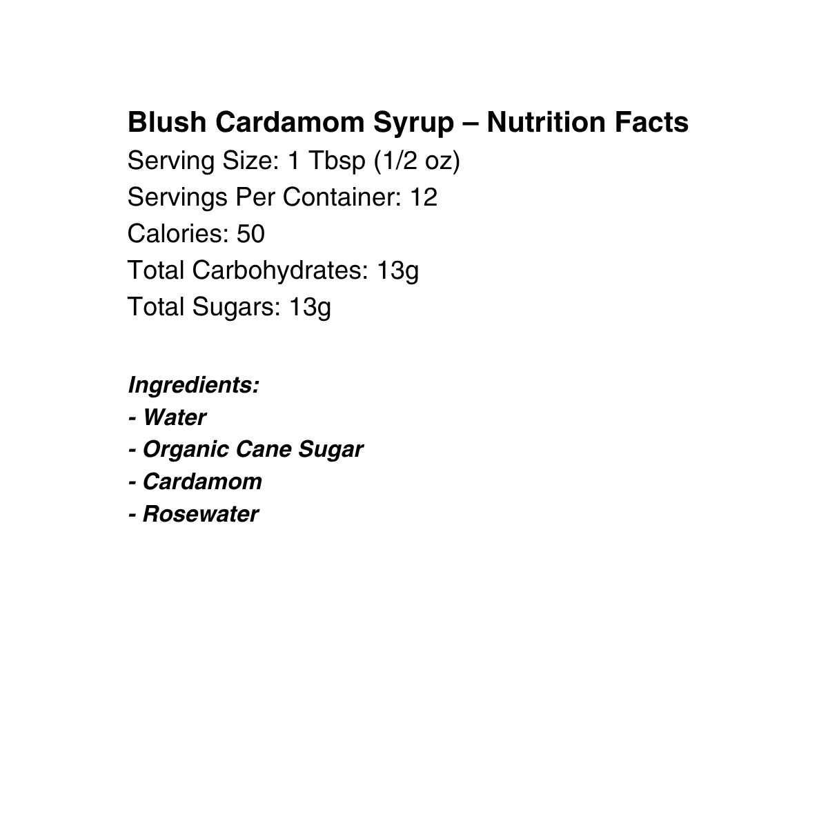 Inspired by warm spices and floral notes, Cardamom Rose is crafted with crushed green cardamom pods and a hint of rosewater. A cozy addition to oat lattes or chai.